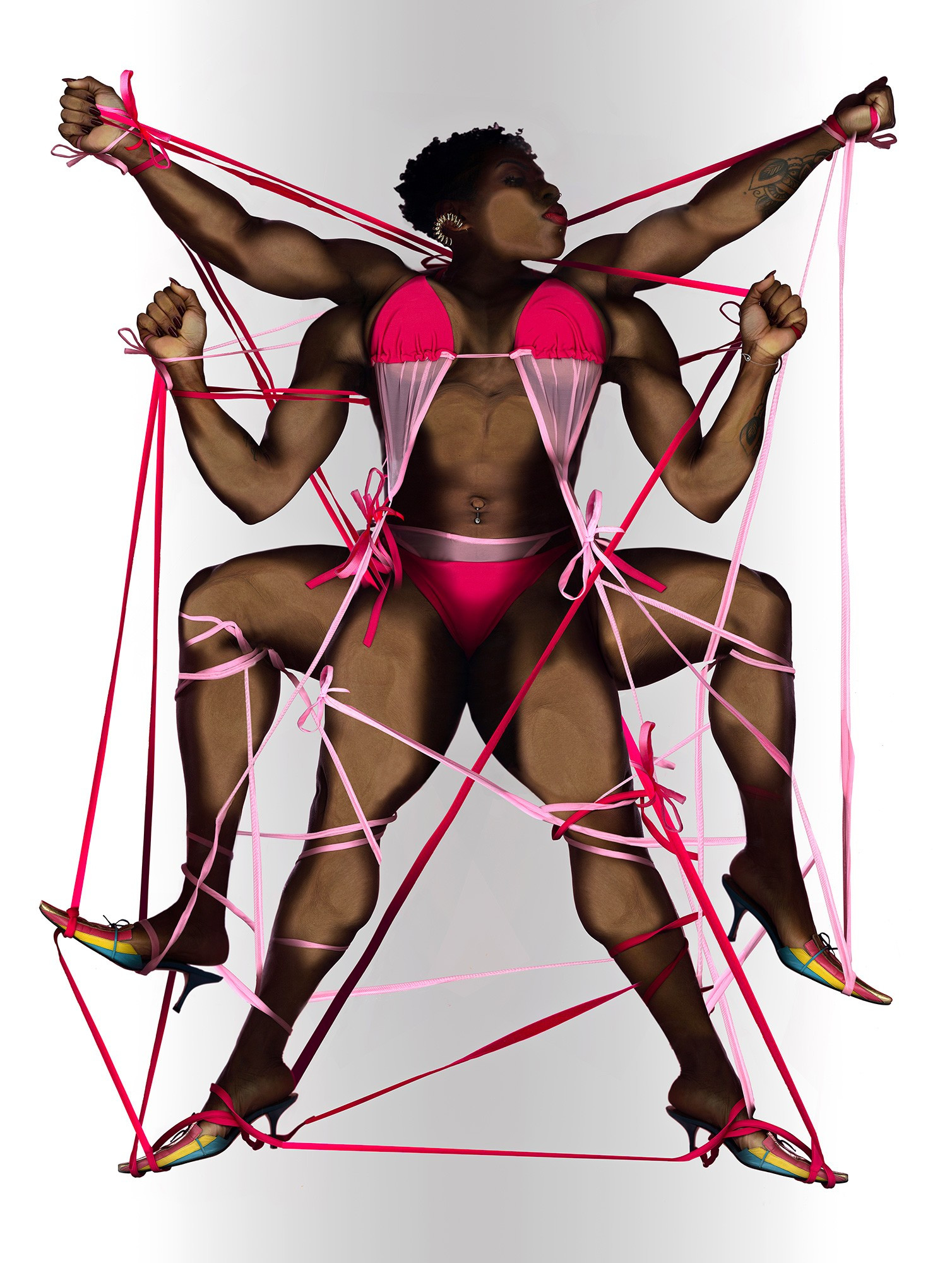 The serie parallels fashion shows with bodybuilding contests. Both events showcase the results of months of dedicated effort to perfect a desired silhouette.